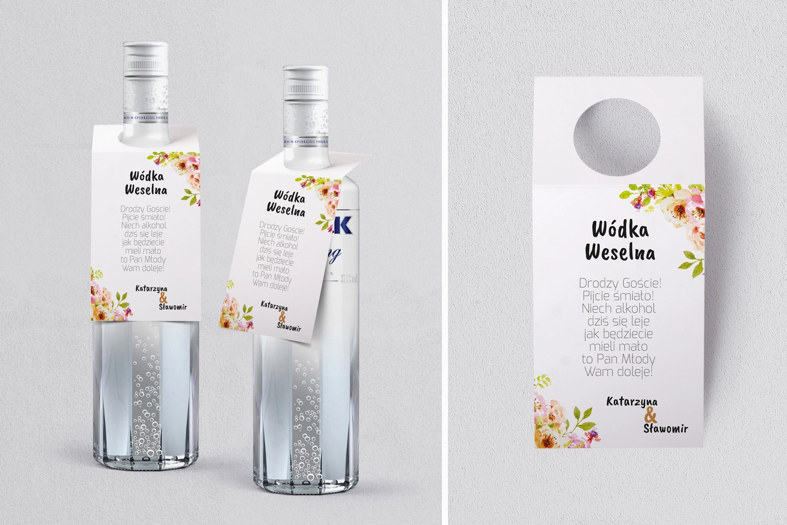 Na tej karcie produktu kupujesz Zawieszki na alkohol w konfiguracji określonej w specyfikacji. Nasze zawieszki  są drukowane przy użyciu wysokiej jakości drukarki produkcyjnej, która zapewnia mocne, nasycone kolory oraz czytelny wyrazisty tekst.