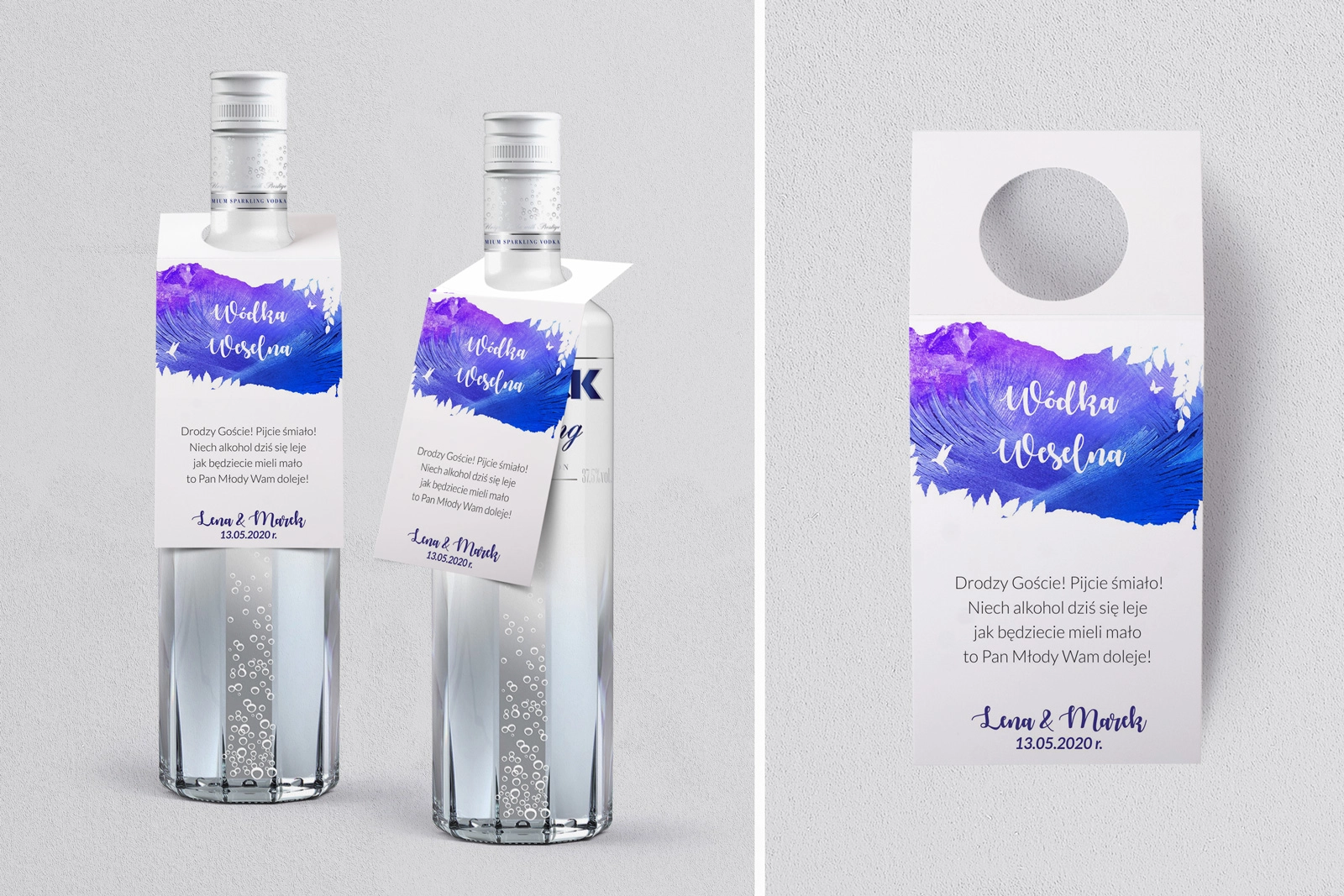 Na tej karcie produktu kupujesz Zawieszki na alkohol w konfiguracji określonej w specyfikacji. Nasze zawieszki są drukowane przy użyciu wysokiej jakości drukarki produkcyjnej, która zapewnia mocne, nasycone kolory oraz czytelny wyrazisty tekst.