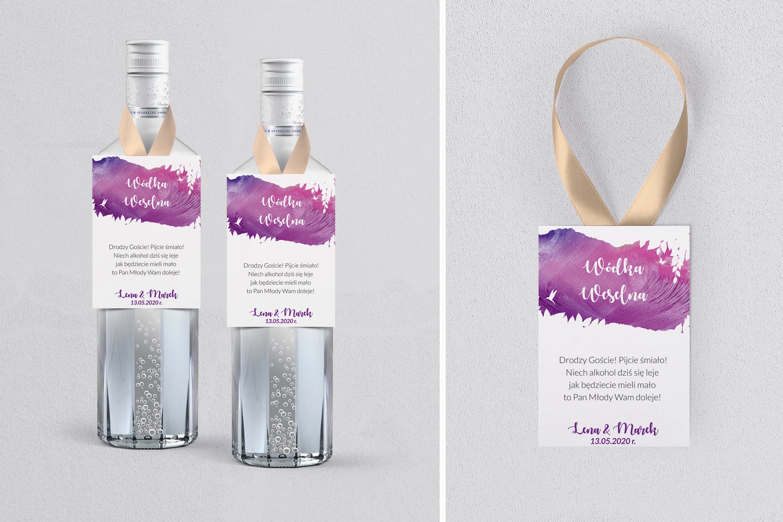 Na tej karcie produktu kupujesz Zawieszki na alkohol w konfiguracji określonej w specyfikacji. Nasze zawieszki  są drukowane przy użyciu wysokiej jakości drukarki produkcyjnej, która zapewnia mocne, nasycone kolory oraz czytelny wyrazisty tekst.