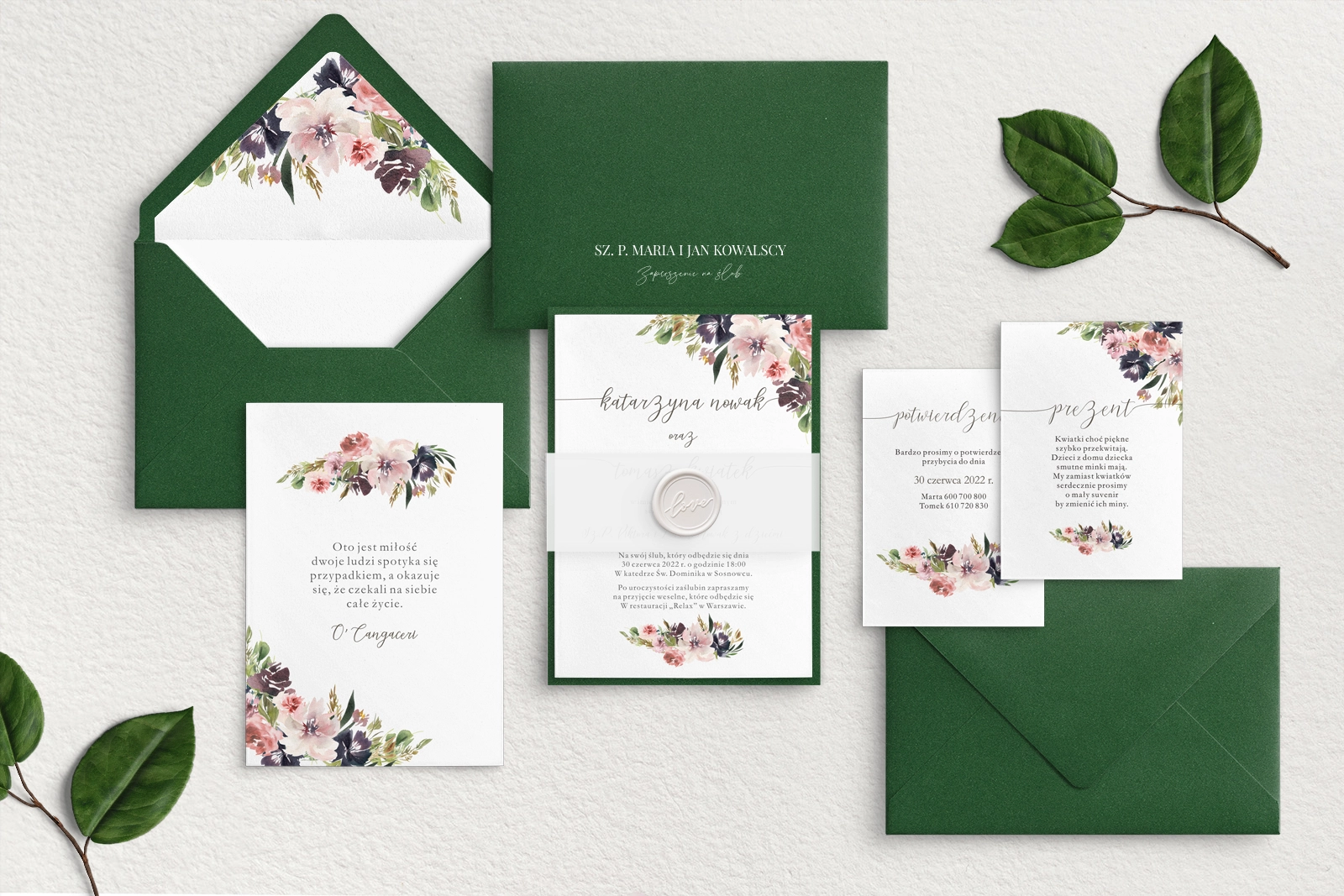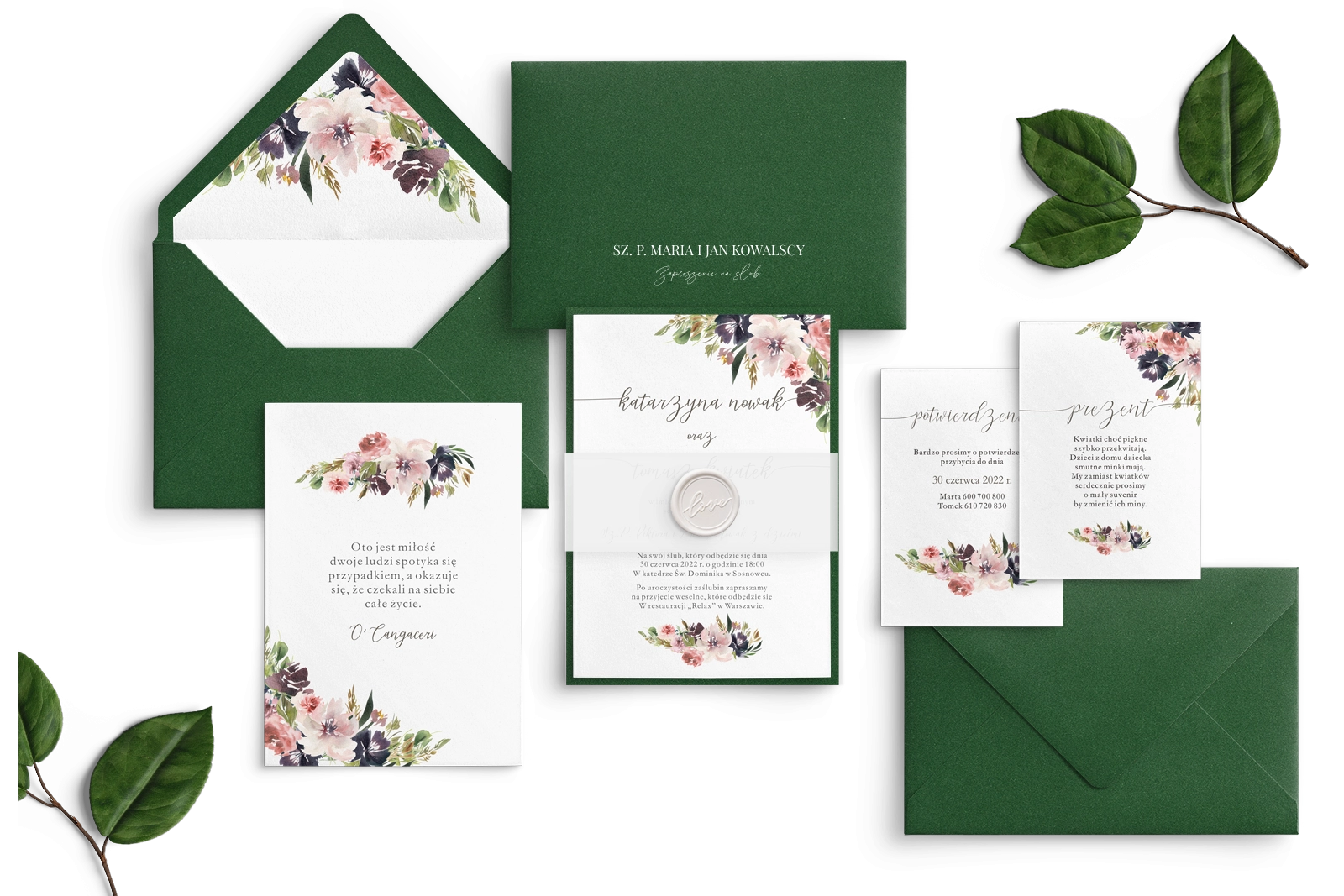 Wszystkie treści zaproszenia oraz dodatkowych wkładek są dowolnie personalizowane. Możesz zmienić każdą treść na swoim zaproszeniu. Podczas wypełniania Formularza Personalizacji opisz nam jak chcesz, aby wyglądało Twoje zaproszenie. Grafik przygotuje projekt skrojony specjalnie dla Ciebie.