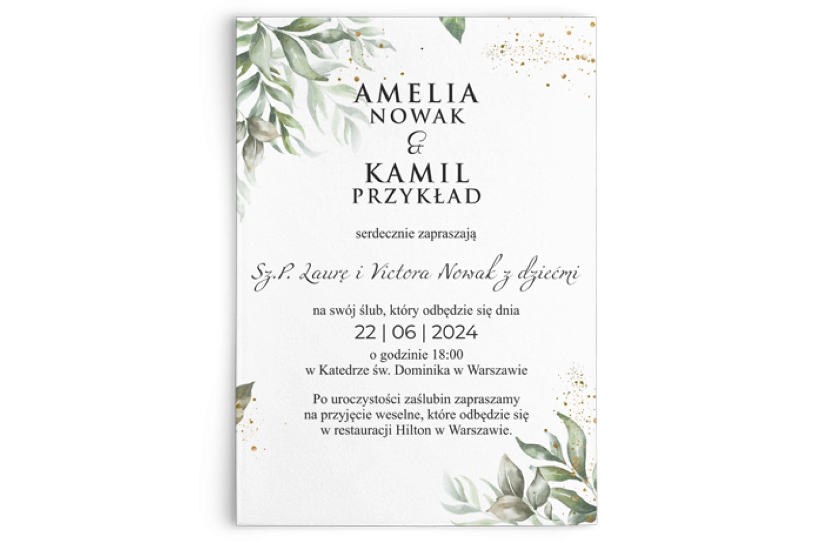 Złocone zaproszenia ślubne Leaves - Motyw 1