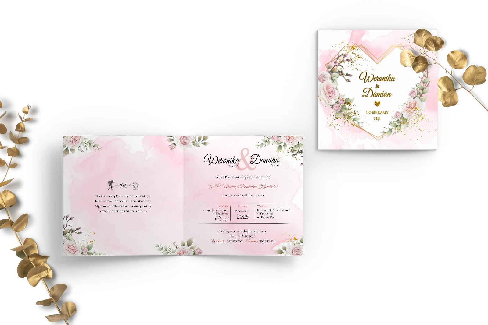 Na tej karcie produktu kupujesz Zaproszenia Ślubne Składane Kwadratowe w konfiguracji określonej w specyfikacji. Nasze zaproszenia ślubne są drukowane na wybranym przez Ciebie papierze przy użyciu wysokiej jakości drukarki produkcyjnej, która zapewnia mocne, nasycone kolory oraz czytelny wyrazisty tekst.