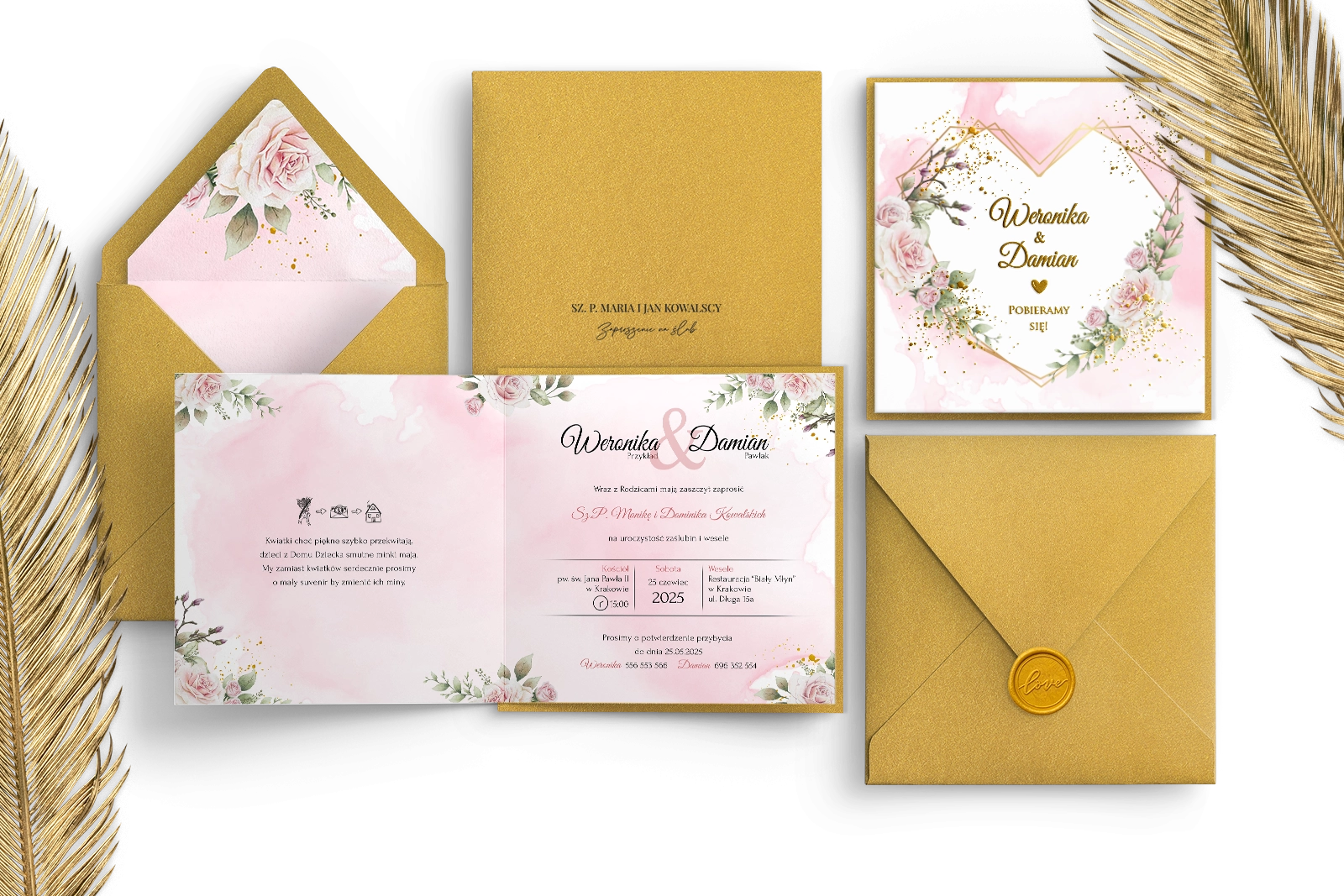 Wszystkie treści zaproszenia oraz dodatkowych wkładek są dowolnie personalizowane. Możesz zmienić każdą treść na swoim zaproszeniu. Podczas wypełniania Formularza Personalizacji opisz nam jak chcesz, aby wyglądało Twoje zaproszenie. Grafik przygotuje projekt skrojony specjalnie dla Ciebie.
